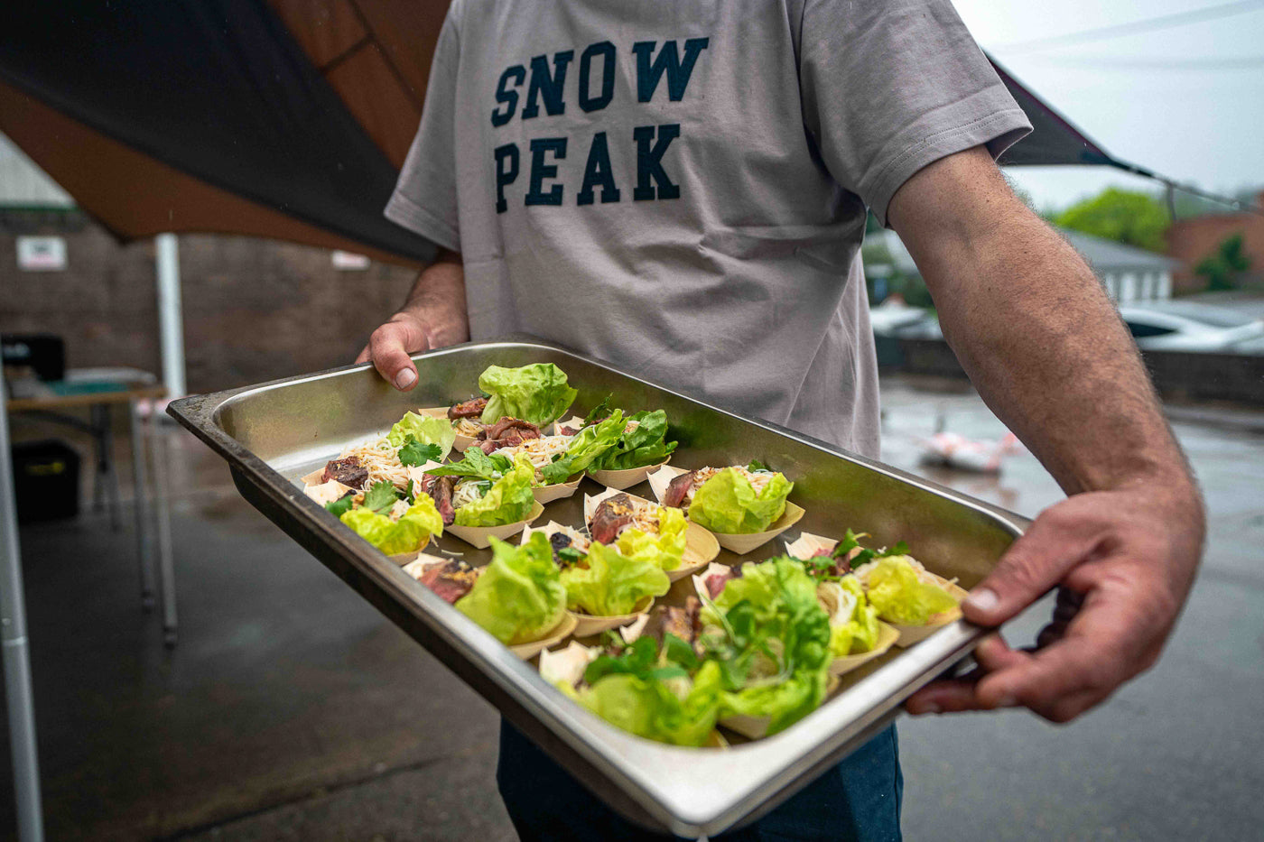 On a rainy Saturday in October we hosted a 'Spring Snow Peak Festival' to celebrate the season with one of our favourite brands. A good friend of ours, Luke, who is also a chef kindly joined us on the day to cook canapés using the Snow Peak BBQ Box fitted into the Iron Grill Table. Luke has shared with us the recipe below so you too can cook this meal for your loved ones, at home or around the camp fire. This recipe can be served as a meal (serves 4) or split into smaller portions to be served as canapés.