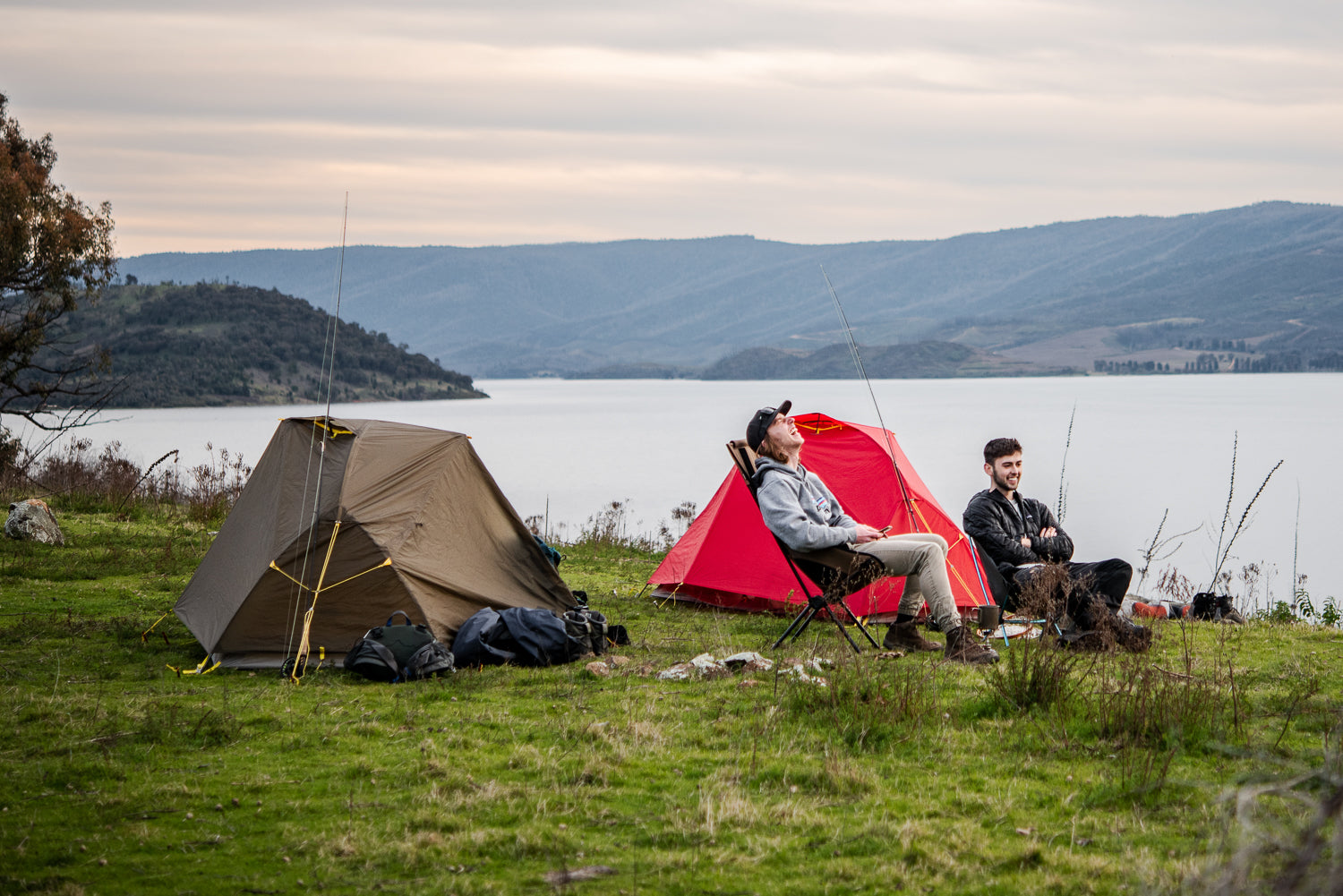 If you're local or know the area, you'll be aware that you don't have to strap all your gear to your back in order to spend the night at Blowering. There are many campsites where you can camp directly out of your vehicle. However, Blowering Dam is in fact three times the size of Sydney Harbour which leaves a lot of foreshore to be explored. Hence, Pat and Dom feel the best campsites and the best adventures are the ones off the beaten track and a little out of the way.
