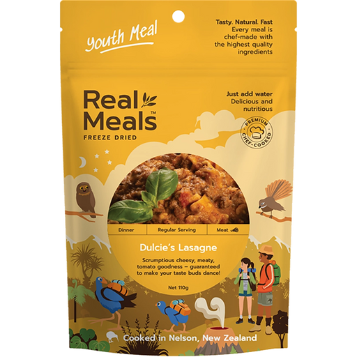 Real MealsHearty cheesy lasagne layers for trail comfort Real Meals Dulcie’s Lasagne Meal delivers layers of savoury beef mince, tomato sauce and tender past...