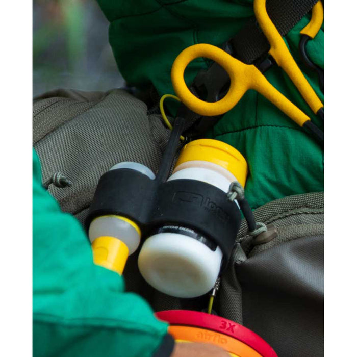 Sturdy, lightweight, virtually unbreakable, and created to accommodate two floatant bottles, the Loon Outdoors Silicone Double Barrel Caddy firmly attaches to any backpack, bag, or vest using a stainless steel tool tether, ensuring your floatant is always within easy reach.