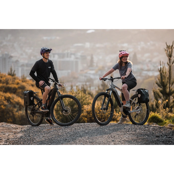 The Aeroe Pannier Receiver transforms your Spider Rear Rack into a versatile commuting and adventure-ready solution. Compatible with any pannier brand, it secures your gear with anti-sway fingers and built-in top rails for stability on every ride. Adjust the pannier position effortlessly to suit any bike setup, from full-suspension frames to dropper posts. With durable materials and seamless switching between weekday commutes and weekend explorations, it’s the ultimate blend of style and function for MTB and eMTB riders.