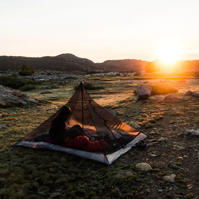 The Hyperlite Mountain Gear UltaMid 2 Insert with DCF11 Floor provides a fully enclosed, breathable interior for the UltaMid 2 Pyramid Tent. Designed to keep bugs and moisture at bay, this insert features durable no-see-um mesh walls and a DCF11 bathtub floor with a reinforced center patch for added durability. The adjustable shock cord and glove hooks allow for a secure connection to the tent, while the two-way vertical zipper with horizontal floor zippers ensures easy access. Whether on alpine expeditions or extended backcountry trips, this lightweight insert offers superior protection and comfort.