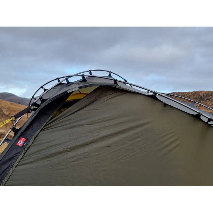 Built for rugged adventures and unpredictable conditions, the Nortent Vern 1 One-Person Backpacking Tent offers unmatched stability in a compact design. This four-season tent features a reinforced silnylon flysheet, Dyneema guy lines, and thick seam reinforcements to disperse wind forces effectively. Designed for fast pitching and flexible use, the Vern 1 includes three air valves for airflow control, a spacious vestibule for gear and cooking, and dual entrances for adaptable access. Its inner tent provides insect protection, weather sealing, and smart storage, making it an ideal choice for solo trekkers seeking dependable shelter in remote landscapes.