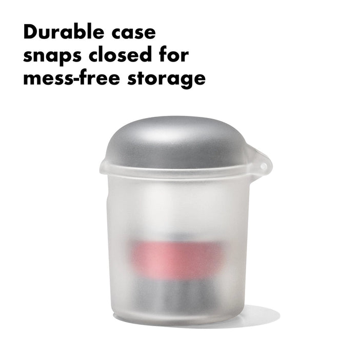- Snap-shut case design for secure, no-spill transport