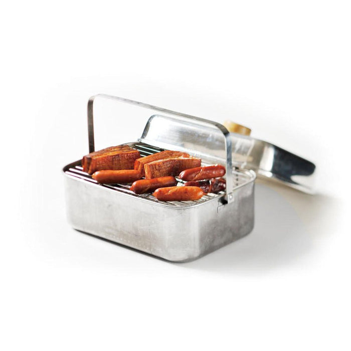 A smoker will cook your food in a way that is both delicious and uncomplicated. The smoker has a convenient two-level structure so that multiple ingredients can be smoked at once. The smoker is compact and easy to carry thanks to the folding handle. Designed to be placed on a heat source.