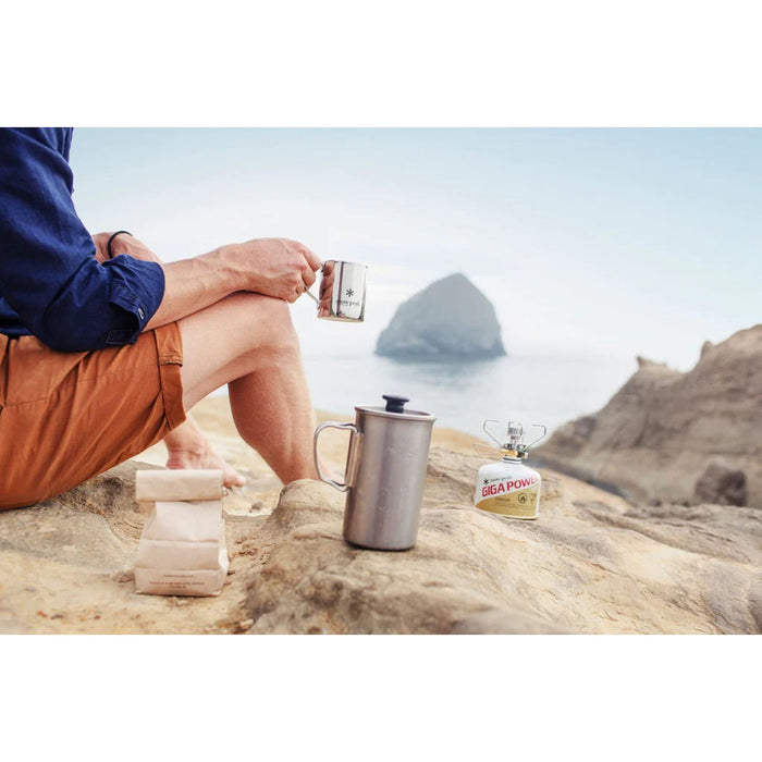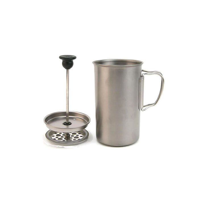 A coffee in the morning is almost a necessity for some, and thanks to this sensational titanium coffee press you can enjoy your morning roast wherever you wake up. If you take a moment, you can imagine the birds singing their morning song... the campfire smouldering... oh, and there you are - with a warm, fresh coffee in your hand. The quality titanium construction is exceptionally lightweight and strong, in fact - it is approximately 45% lighter than steel & much stronger than aluminium. Who knew!? It is also resistant to corrosion, which will extend your cookware's longevity and it has no metallic taste or smell. The lightweight titanium construction enables you to carry the Cafe Press wherever you please.