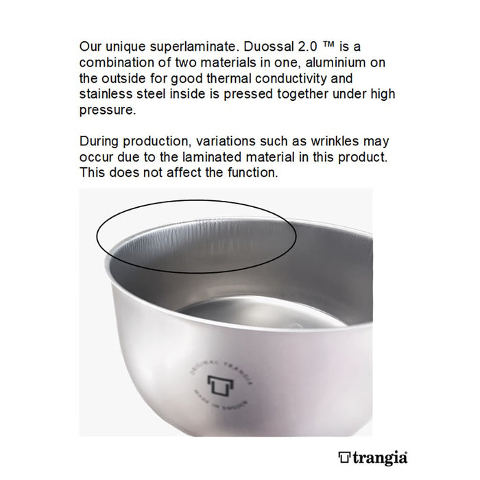 The innovative Duossal material, a combination of aluminium and stainless steel layers, ensures efficient heat distribution and durability while keeping the weight to a minimum. Whether you're embarking on a challenging hike or setting up camp by the serene lakeside, the Trangia 25-21 cook set offers a compact and versatile solution.